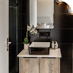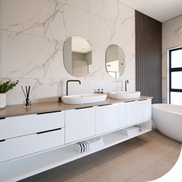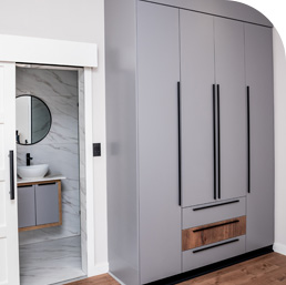 We take a holistic approach to designing your bathroom cupboards, ensuring that they not only meet your functional needs but also harmonize with the overall look and feel of your home. Our design process includes careful consideration of the room's fixtures and details, as well as the surrounding decor, to create a cohesive and elegant bathroom space.