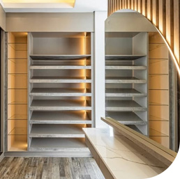 Our build-in cupboards are designed to optimize space and storage, without compromising on style. Whether you need a wardrobe, storage unit, or shelving, we can create a bespoke solution to suit your needs.